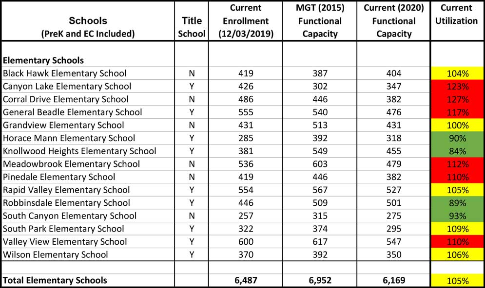In 2015, capacity and utilization at the elementary level was 6,952. Over four years later capacity has decreased.